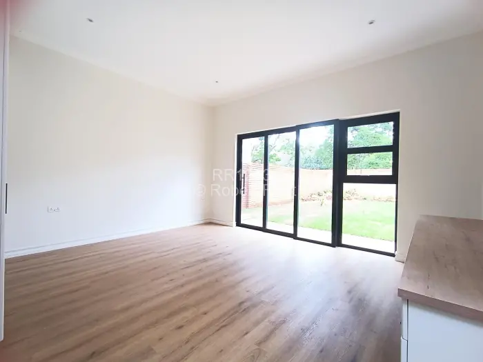 Discover a neat 3-bedroom townhouse available for rent in the desirable area of Borrowdale. This modern property showcases a sleek design with appealing white exterior walls featuring an open-plan living area with high ceilings seamlessly connecting to a spacious kitchen which comes with a gas stove and a built in oven. Each of the three bedrooms includes built-in cupboards, with two bedrooms en-suite bathroom for added privacy.