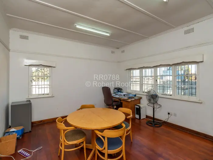 Commercial property conveniently located in Eastlea comprising of 5 offices, reception, kitchen and ablution facilities. The property has a borehole and a 3 bedrooomed cottage.
