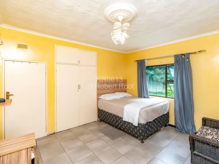 This property is just off the main Harare/Beit Bridge Rd and is set on 2145m2 in a mature garden with a gazebo and braai facilities.