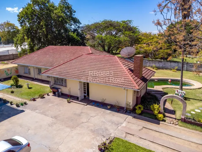 Outdoor living comes alive with a beautifully landscaped garden, a curved swimming pool with a stone patio, and a veranda ideal for unwinding. The property also offers reliable amenities such as internet connection, boreholes, and water tanks. Embrace a lifestyle of comfort and convenience in this tranquil haven, where pets are welcome.