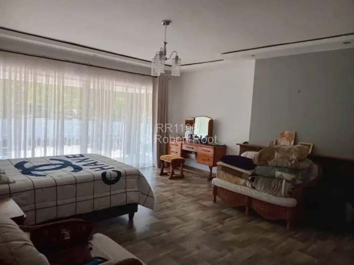 A solid fully tiled partial double- storey house with 7 bedrooms with built-in cupboards 2 main ensuites (with shower and bathtub) 2 full bathrooms, and guest toilet. Main bedroom inclusive of a walk-in closet, fireplace and balcony. Spacious kitchen with built in cupboards, separate scullery and walk-in and lock up pantry.